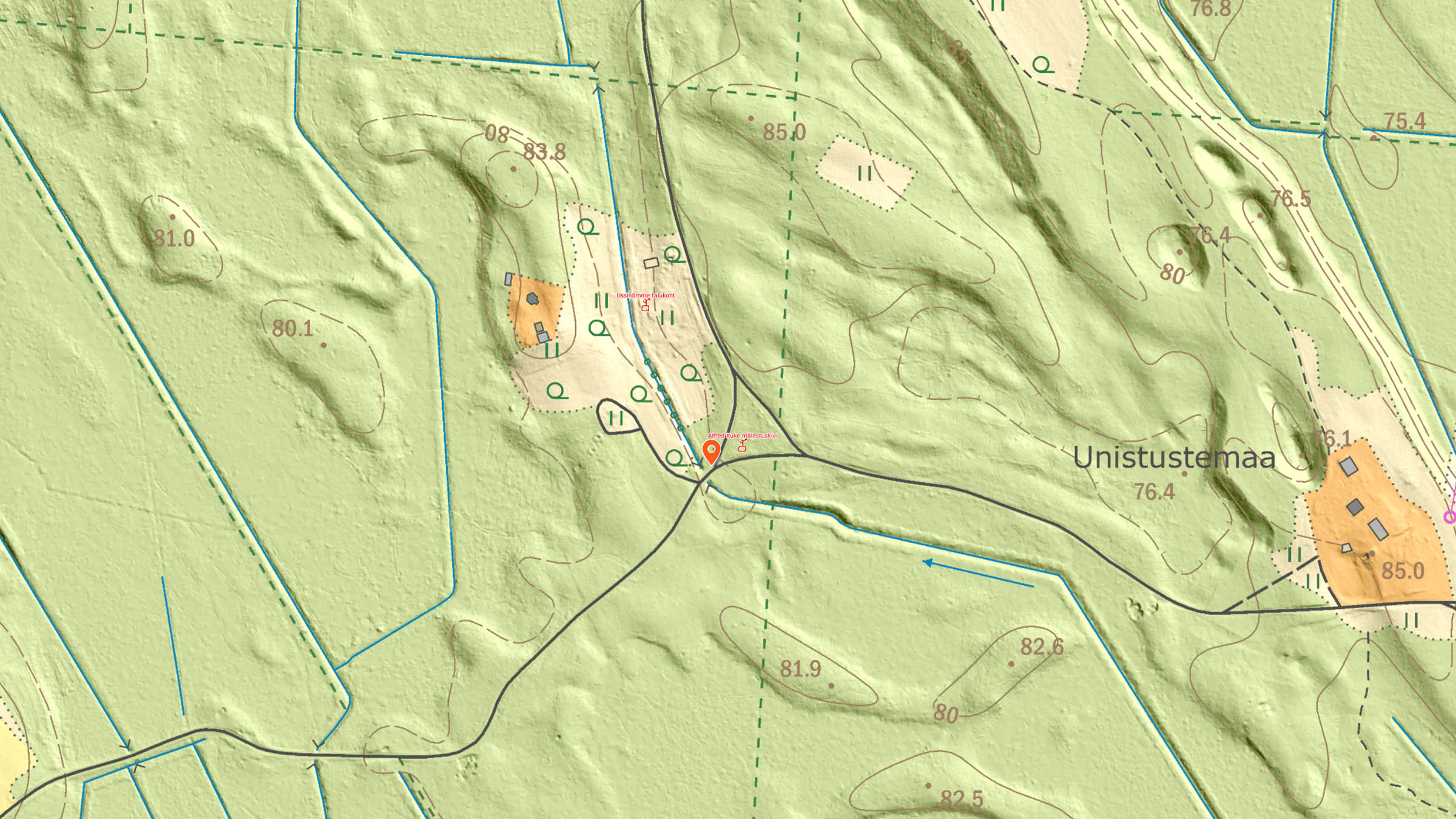 Väike mustast graniidist mälestuskivi Kautla memoriaali tee ääres. Kautla lahingu järel tapetud Alfred Kukke peeti Kautla meeste kaasosaliseks.