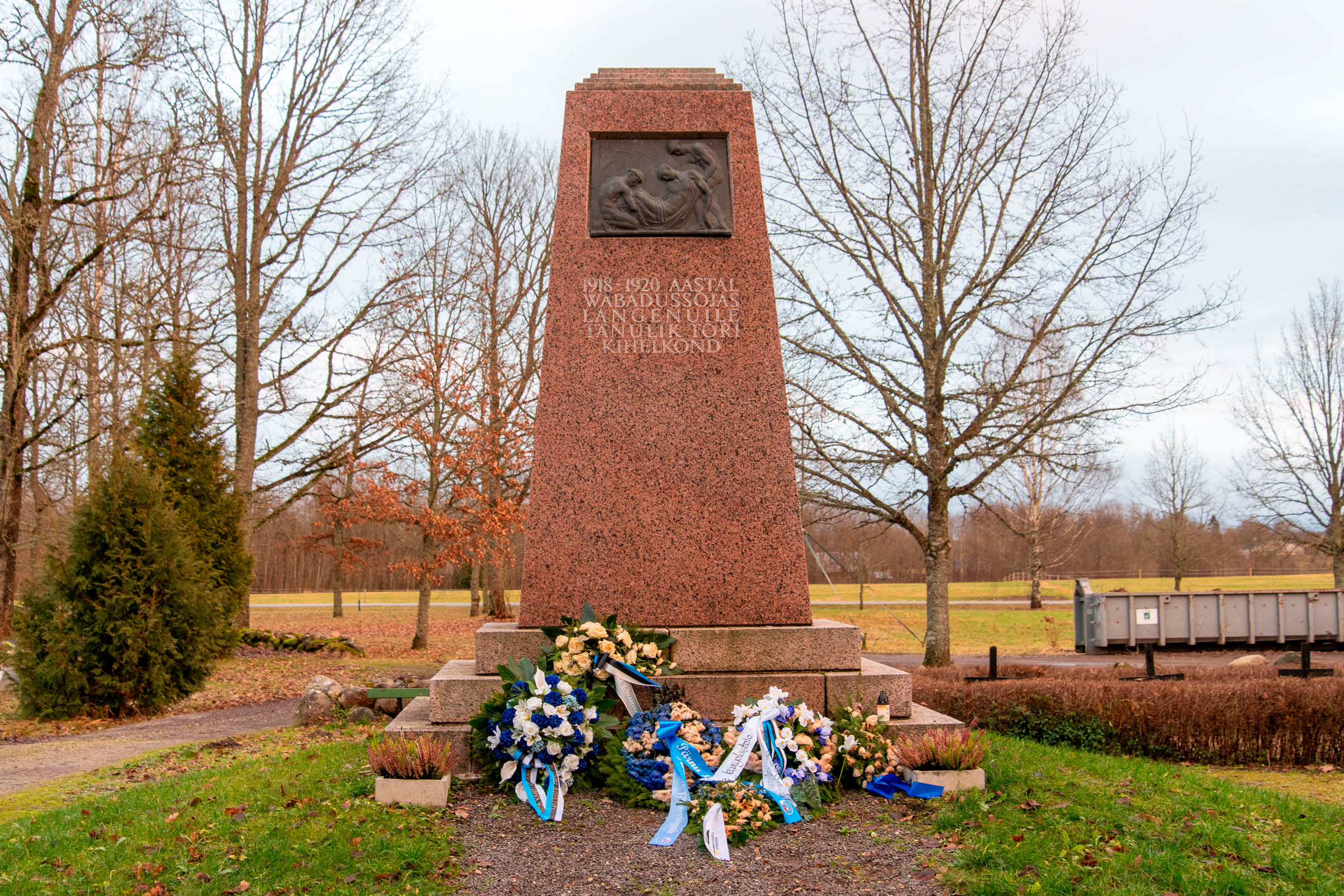 Mälestussammas Tori kalmistul avati 1923. aastal. „1918-1920 Vabadussõjas langenuile (52 nime)“. Sammas õhiti 1945. aastal, tükke kasutati Tori silla ehitusel betooni täiteks. Taastatud sammas avati 1989. aastal. Vahepealsetel aastatel oli selgunud veel 21 nime, seega on taastatud sambale raiutud 73 nime.
