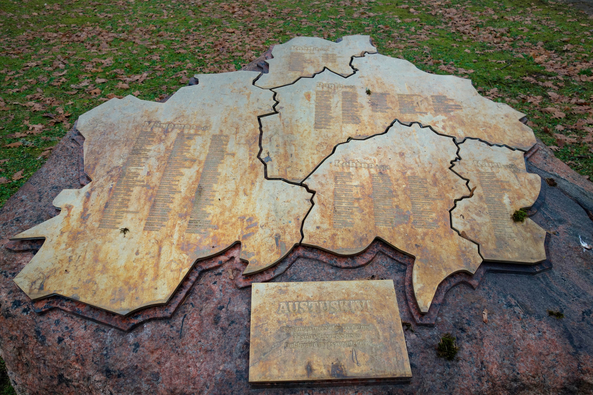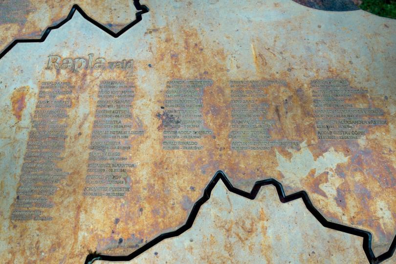 Avati 30.08.2025 Rapla kiriku kõrval. Rapla südames avati Raplamaa endistele metsavendadele mälestuskivi. Mälestusmärgile on pronksi valatud Raplamaa kujutis 180 nimega.
